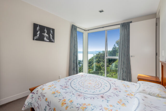 Flooded with natural light, this beautifully maintained residence features many floor-to-ceiling windows that capture breathtaking vistas. The open-plan kitchen and dining area is both stylish and functional, with gas cooking, generous storage, and seamless flow into a sunlit lounge. Step out onto the deck perfect for entertaining or unwinding with a morning coffee.